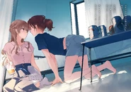 After middle school, Sayaka switched to Tohmi Higashi High School, a co-educational high school, where she met Touko Nanami, a girl in her first year. She quickly came to admire Touko's confidence, hardworking character and outgoing personality. They both joined the student council and began working together, forging a close friendship. Although Sayaka soon realized that she was in love with Touko, she kept this to herself, unwilling to jeopardize their existing relationship. She decided that she was fine simply supporting her friend however she could.